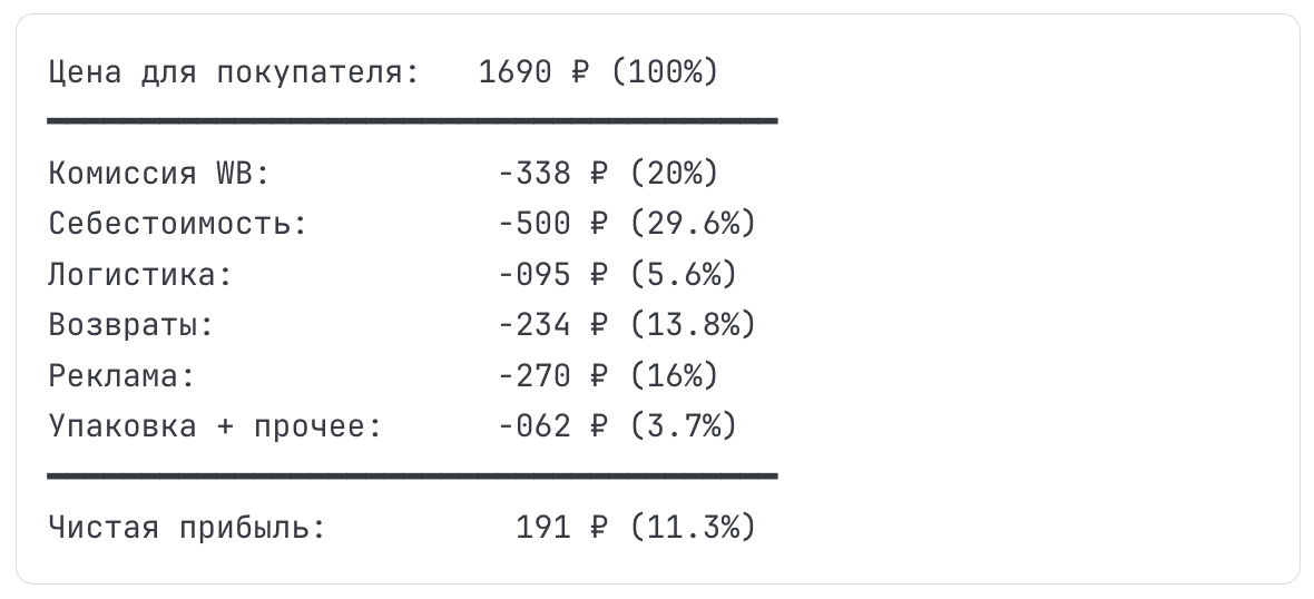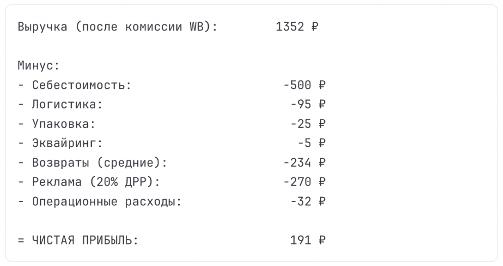 Проблема в том, что между «продал за 2000» и «заработал 1400» лежит пропасть из комиссий, логистики, возвратов, рекламы и десятка других расходов. Настоящая прибыль с одной продажи может оказаться не 1400, а 150 рублей. Или вообще минус 50.