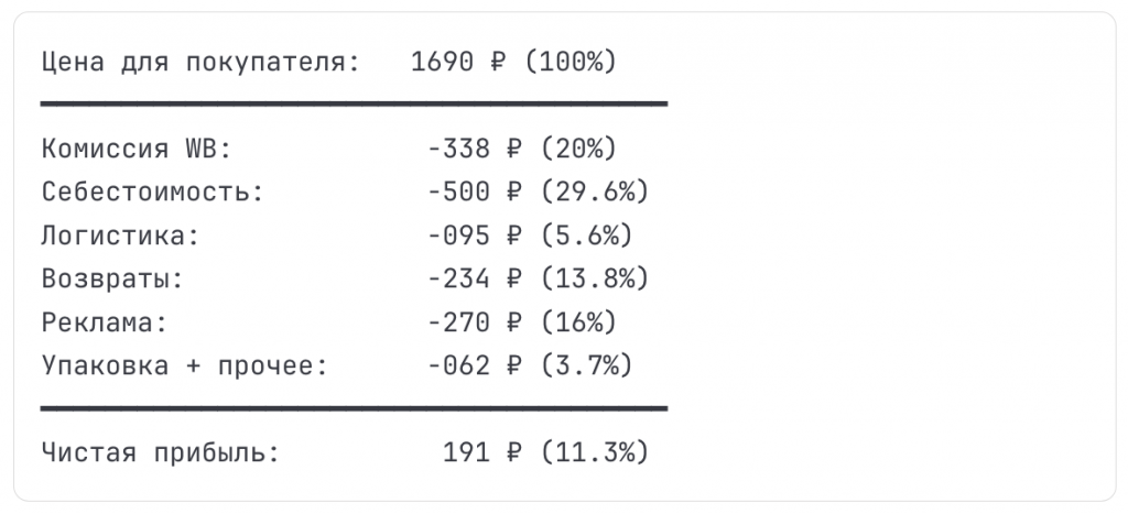 Unit-экономика (юнит-экономика) — это расчет прибыли или убытка на единицу товара. В нашем случае — сколько реально зарабатываете или теряете с одной проданной штуки.