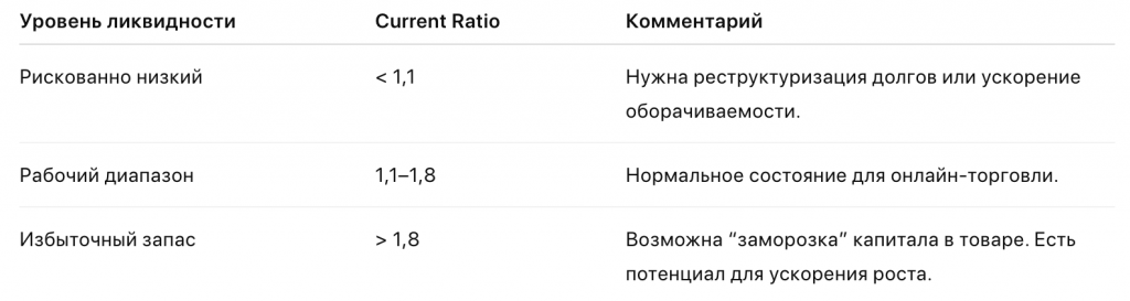 Для классичСского бизнСса Current Ratio = 2 считаСтся ΠΈΠ΄Π΅Π°Π»ΡŒΠ½Ρ‹ΠΌ. Но Ρƒ сСллСров Π΅ΡΡ‚ΡŒ особСнности: