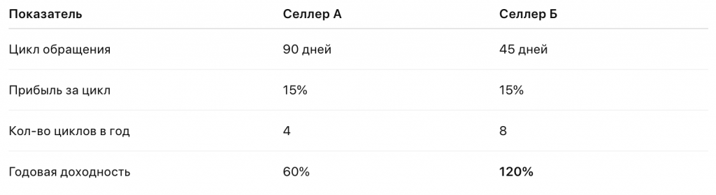 Если ΡƒΠ²Π΅Π»ΠΈΡ‡ΠΈΡ‚ΡŒ ΡΠΊΠΎΡ€ΠΎΡΡ‚ΡŒ ΠΏΡ€ΠΎΠ΄Π°ΠΆ Π½Π° 10 Π΄Π½Π΅ΠΉ β€” Ρ†ΠΈΠΊΠ» сократится Π΄ΠΎ 45 Π΄Π½Π΅ΠΉ, ΠΈ Π·Π° Π³ΠΎΠ΄ ΠΌΠΎΠΆΠ½ΠΎ ΡΠ΄Π΅Π»Π°Ρ‚ΡŒ Π½Π΅ 6, Π° 8 ΠΏΠΎΠ»Π½Ρ‹Ρ… ΠΎΠ±ΠΎΡ€ΠΎΡ‚ΠΎΠ².