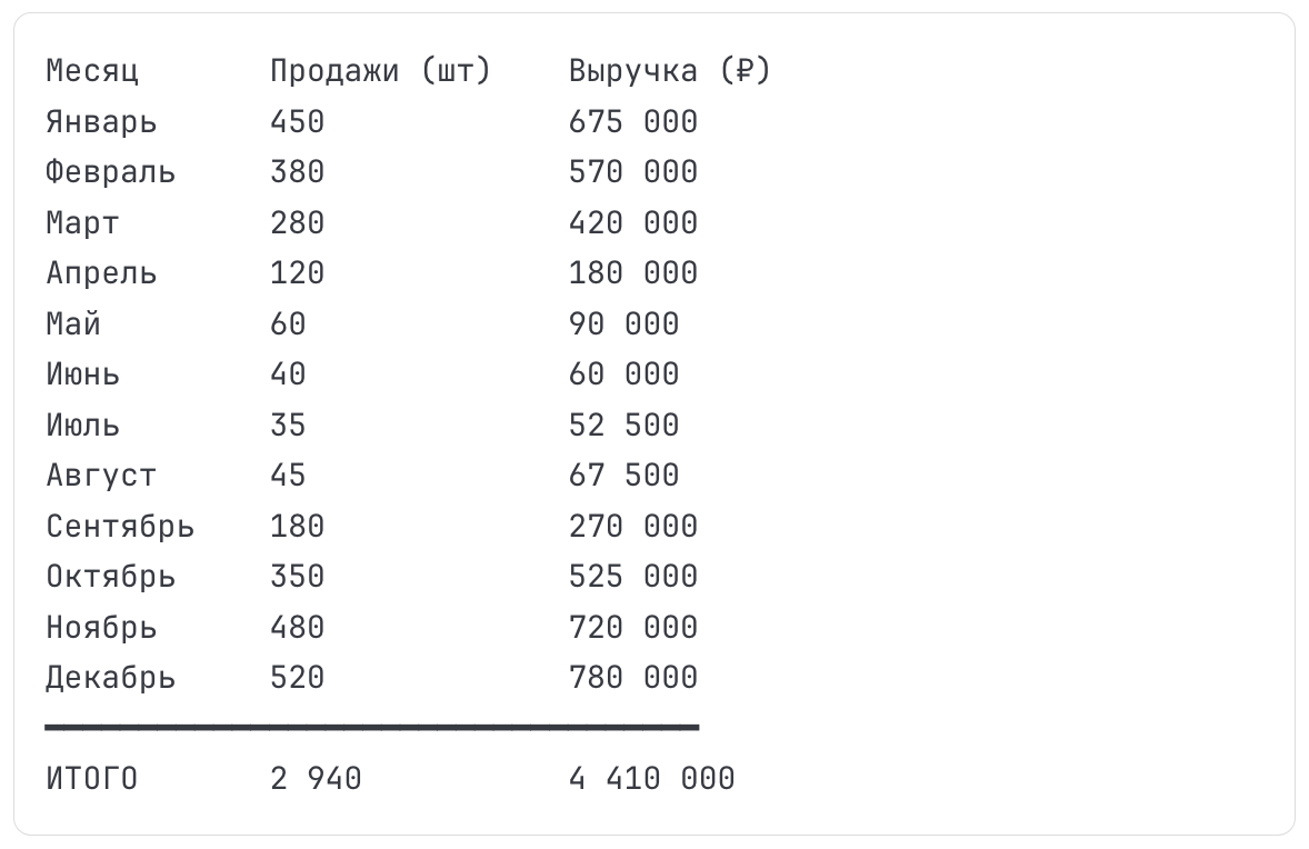 Реальность: Декабрь может давать 30-40% годовой выручки. Если планировать по нему, закупите товара в 3 раза больше нужного.