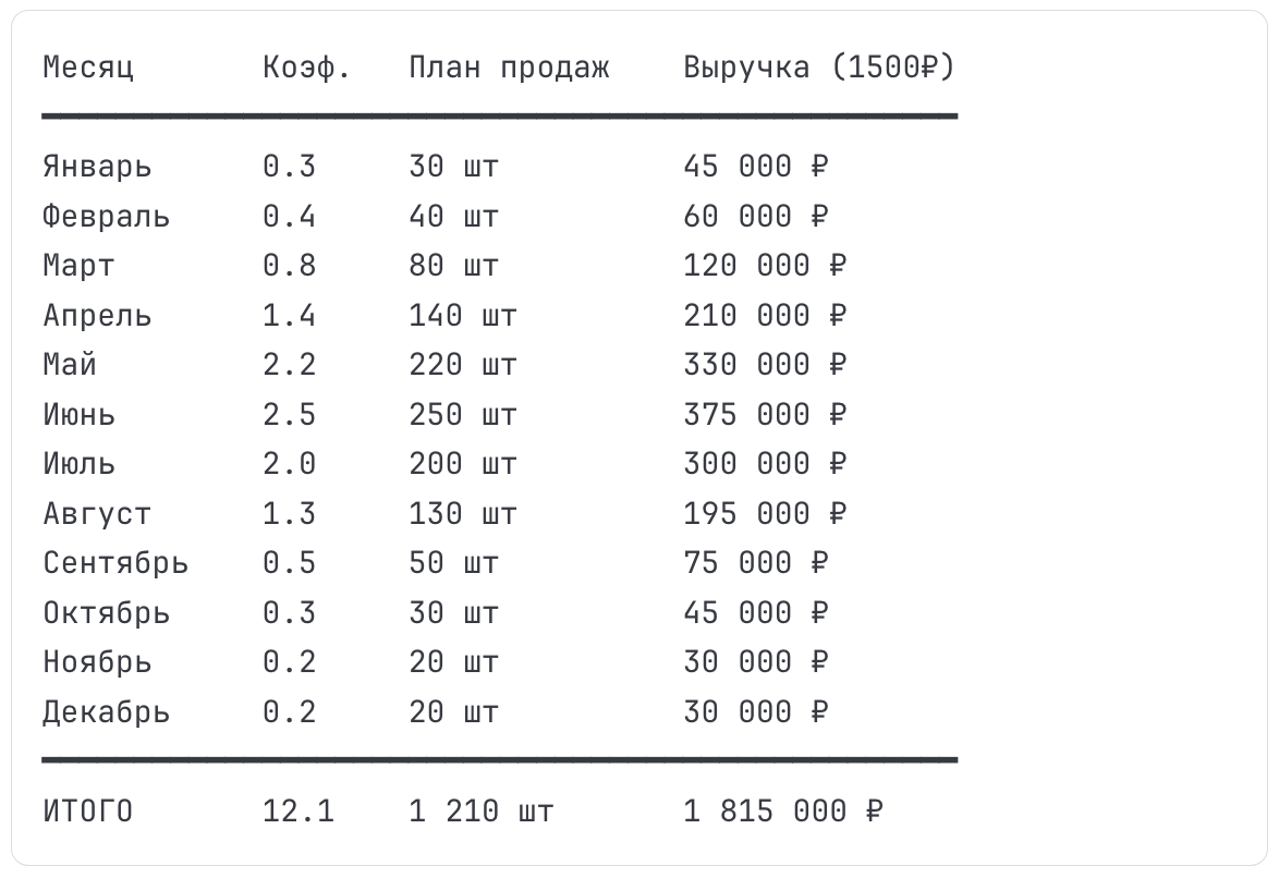 Решение: Закупайте на 20-30% больше прогноза на пиковые месяцы.
