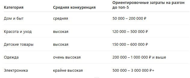 Средний бюджет: 10 000–70 000 ₽ на SKU.