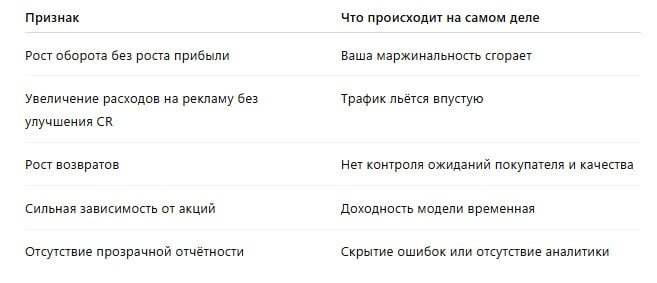 Если маржа на единицу товара снижалась ради роста оборота — это красный флаг.