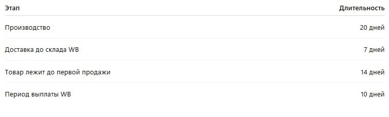 То есть деньги возвращаются через 51 день после оплаты поставщику. Если возвраты ещё затронут 15–20% партии — цикл увеличится до 60–70 дней.