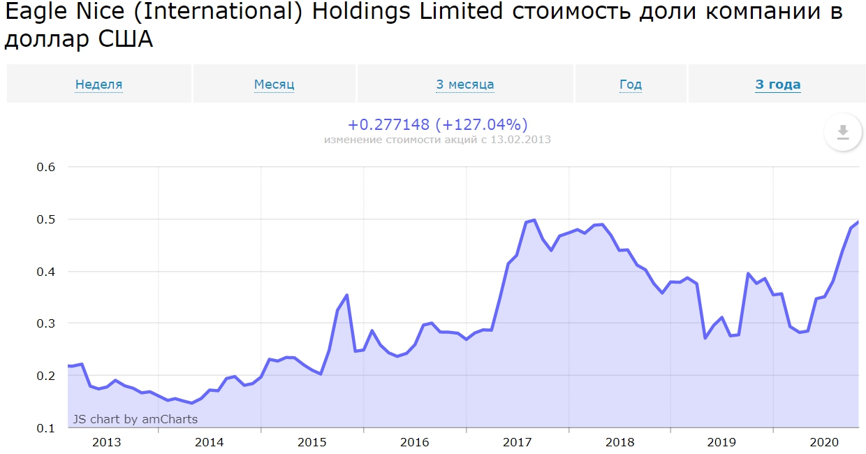 | 1 | Дивиденды Eagle Nice (International) Holdings Limited | 0.03 $ | 13.56% |